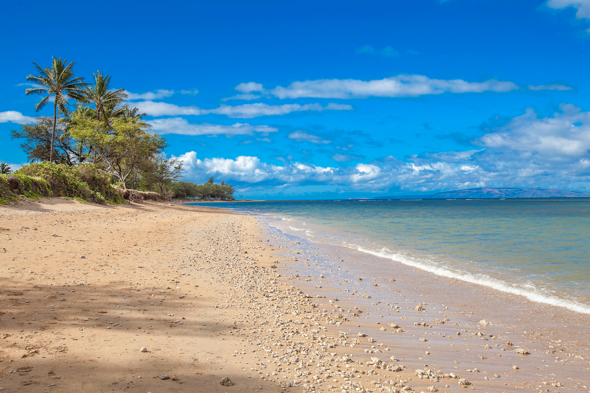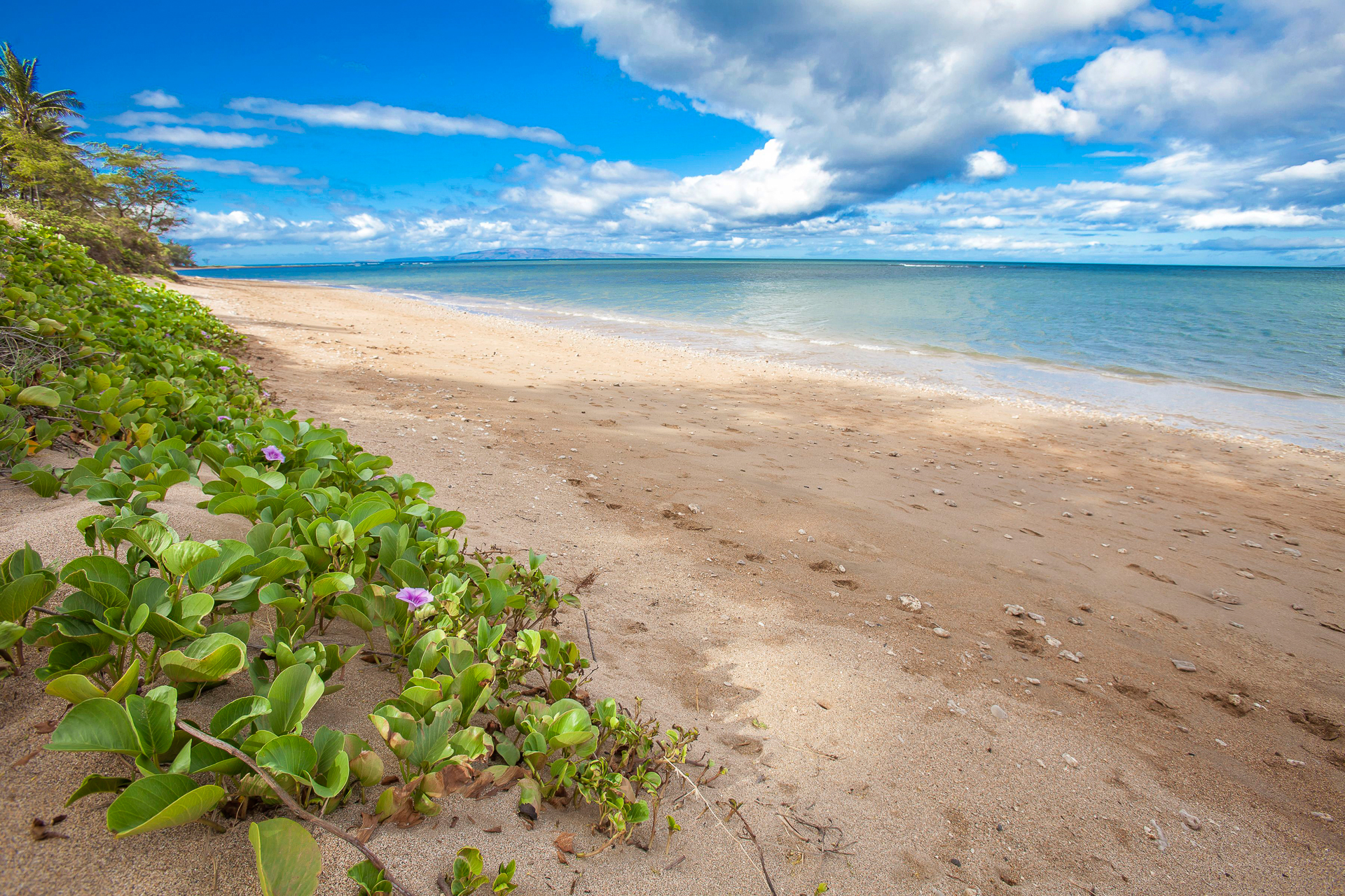 Beach at Luana Kai looking northward at high tide